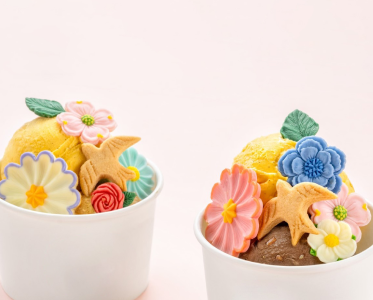Inspired by the colour yellow, which is regarded as the symbolic colour of the earth in Chinese culture, Flowering Ice Cream is served with a 3D cookie featuring a gorgeous nature-inspired design, conveying the image of the earth filled with beautiful nature.